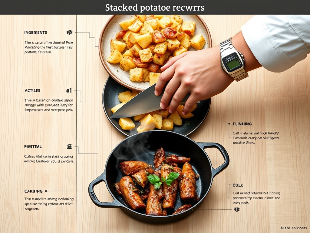Imagine the sound of a thousand microscopic glass shards shattering at once. That is the precise acoustic profile of the perfect bite. When we talk about stacked potato recipes, we are not just discussing a side dish; we are engineering a structural marvel of starch and lipid. It is about those paper thin layers, fused together by clarified butter, creating a geometric tower that is impossibly soft in the center and aggressively crunchy on the perimeter. We are chasing that golden ratio where the exterior achieves a deep mahogany hue while the interior remains a buttery, silk like laminate. This is the ultimate evolution of the humble tuber.
