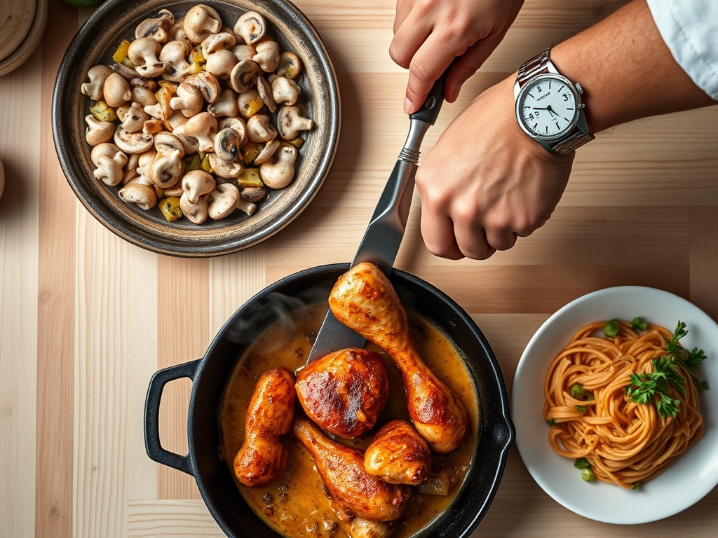 The flow begins with the protein. While your skillet preheats; you slice and season. The chicken takes about 6 minutes per side to develop a golden crust. Once the meat is resting; the mushrooms enter the pan to release their moisture; which takes roughly 8 minutes. The sauce assembly and final simmer require another 10 minutes. By layering your tasks; you ensure that no ingredient is overcooked; and the sauce reaches its peak viscosity just as the chicken finishes its resting period.