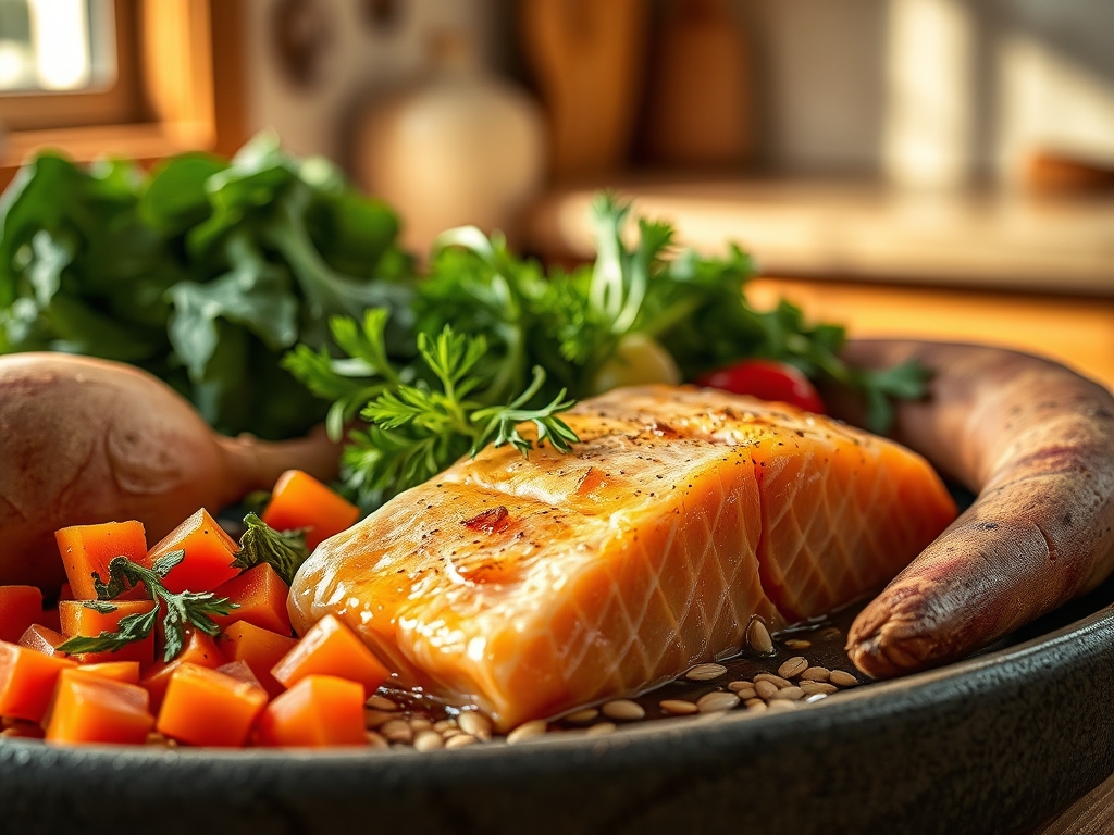 For a Keto version, reduce the portion of sweet potato and increase the healthy fats with an avocado-lime crema. For a Vegan alternative, replace the salmon with a thick "steak" of roasted cauliflower or firm tofu marinated in seaweed broth to mimic that oceanic salinity.